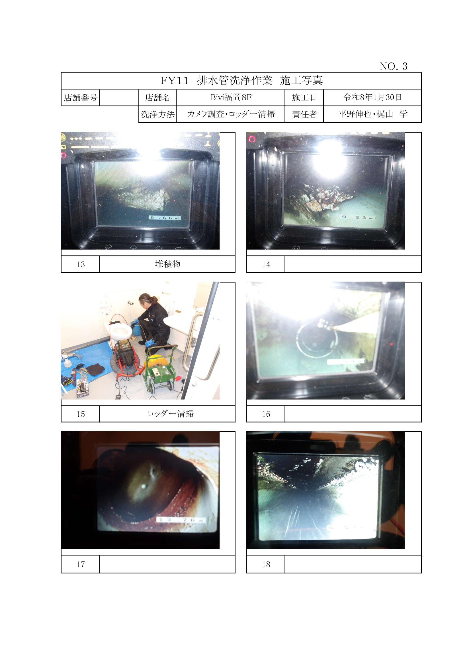 | 作業内容 | カメラ調査 ロッダー清掃 |
